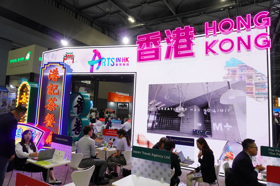 巨大なネオン看板が目を引く香港政府観光局のブースは、2025年に日本でもヒットした香港映画「トワイライト・ウォリアーズ 決戦!九龍城砦」のセット展示が目玉。