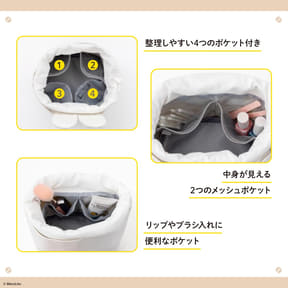 ミッフィーの顔をそのまま模った巾着ポーチで、サイズはマチたっぷりの約24×12×14cm(幅×奥行き×高さ)。中には4つの内ポケットを備え、コスメや文房具などの小物を整理整頓しやすい設計にしている。