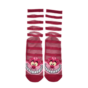 劇中でアリスを時に導き、時に混乱させるユニークな存在として絶大な人気を誇るチェシャ猫らしさあふれる「ぬいぐるみ」(6000円)や、ピンクとすみれ色の縞模様&闇に消えゆく姿を彷彿させる2カラーの「ぬいぐるみキーチェーン」(2600円)、「靴下」(1200円)などをラインアップ。