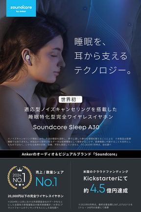 アンカー・ジャパンは、睡眠特化型の完全ワイヤレスイヤフォンの新作「Soundcore Sleep A30」を9月25日に発売した。価格は2万9990円。