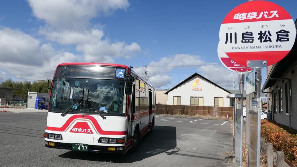 さて、これで愛知県・岐阜県のバス乗り継ぎはできなくなるのか? ……大丈夫だ。川島名鉄バス・川島バス停の100mほど先に、「各務原市ふれあいバス」の松倉公民館前バス停があり、イオンモール各務原まで出れば、そのあと岐阜バスに乗り継いで岐阜市内に乗り継げるようになっている。経由地は変わるものの、これからもバス乗り継ぎ旅を楽しむことはできそうだ。