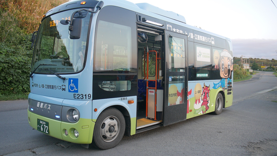廃止の要因は「町内全域でのデマンドバス転換」。乗客の減少に伴って、町内の函館バス路線がワゴン車を使ったデマンドバス「かみGO!」に転換するにあたって、町境を越えて松前町に向かうバスが廃止となる。不便になる?と思いきや、この辺りに多い「新道から外れた旧道の住民」「バスが入ってこれなかった地区」を経由できるなどの小回りが利き、地元の方の利便性はよさそうだ。