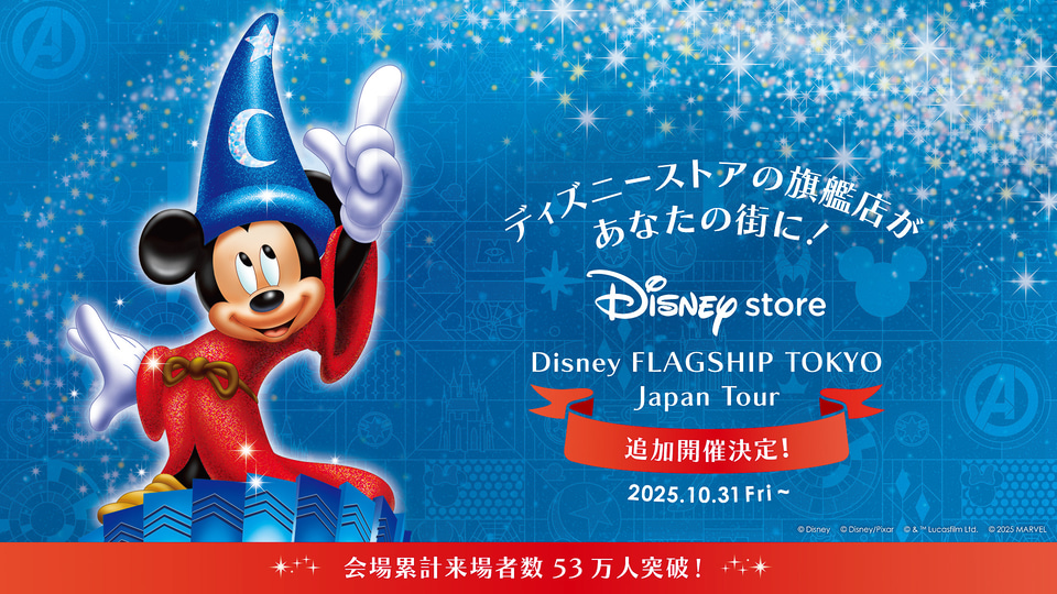ディズニーストアは、「ディズニーフラッグシップ東京ジャパンツアー」の開催都市を新たに9か所追加すると発表した。10月から約1年間にわたって巡回する。今回発表したのは、沖縄・東京・宮崎・愛知会場の4都市。沖縄はこれがディズニーストア初上陸だ。