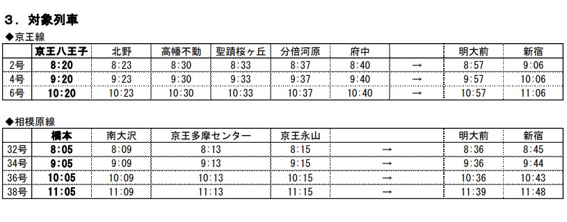 京王ライナーのPremium Pass、11月の平日朝便で同じ座席を一括予約。新宿行き上り列車2本が対象