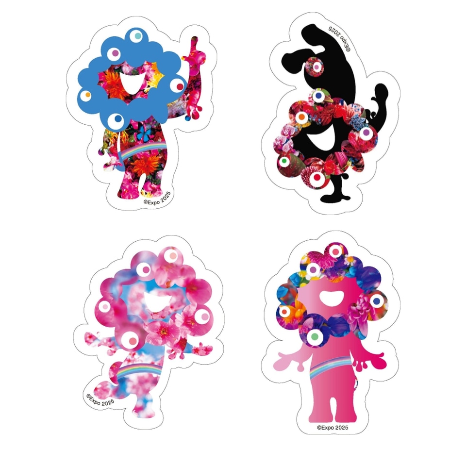 大阪・関西万博公式キャラクター「ミャクミャク」を、写真家・映画監督の蜷川実花氏が自身の作品を用いてデザインしたステッカーセット4枚組。パッケージのサイズは100×100mm、ステッカー本体のサイズは最大66×85mm。ロゴ入りスライダーケースが付属する。