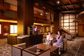 同宿では、13階の屋上にある天空露天風呂から加賀の街並みを一望でき、まるで空に浮かんでいるような感覚とともに山代温泉を楽しめるのが特徴。プレミアムラウンジでは、チェックイン後や湯上りなどの時間に無料のドリンクサービスを利用できる。