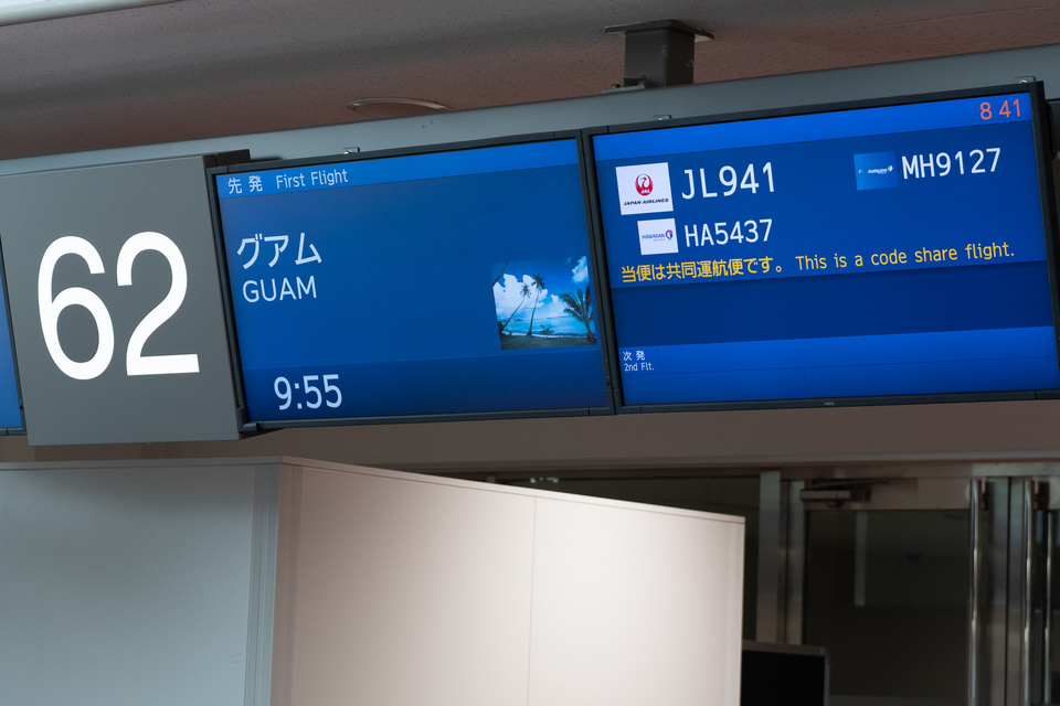 JL942便: グアム(16時40分)発~成田(19時25分)着、毎日運航