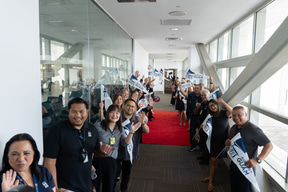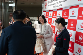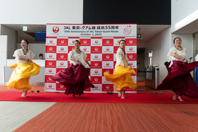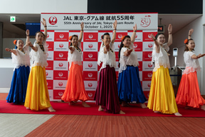 JALは10月1日、グアム線の就航55周年を記念した式典を成田空港で実施した。