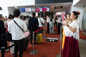 また、グアム政府観光局 局長のレジーン・ビスコー・リー氏は、同局がJALのグアム線と同じ1970年設立であることに触れ、「われわれも55周年。JALとともに歩んできた歴史を振り返ると、グアムと日本の観光交流は航空路線に支えられた絆そのものであると実感している。JALは単なる航空会社ではなく、観光と友好をつなぐ大切なパートナー」と述べて、今後のさらなる関係深化に期待を寄せた。