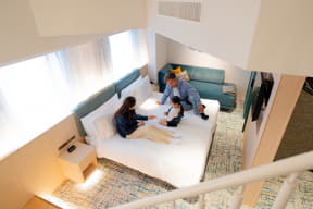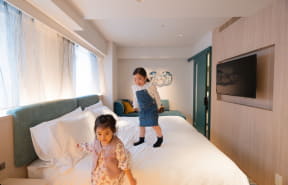 部屋タイプは、スタンダード(81室)、プレミアム(85室)、スイート(29室)の3種。なかでもメゾネットタイプのスイートルームは、ベッドルームやキッチン、リビングを設置しており、ワンランク上のおしゃれな空間でリラックス気分が楽しめるという。