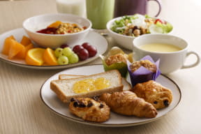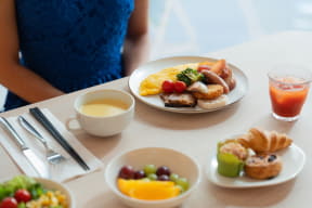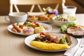 レストランでは、新鮮な地元食材を使用したビュッフェ形式の朝食を提供。メニューは「自家製ザンギ」や「鮭のちゃんちゃん焼き」など北海道ならではの料理も楽しめる。また、カフェ&バーラウンジではヴィーガンの利用客を想定し、動物性食品を使用しないメニューも用意する。
