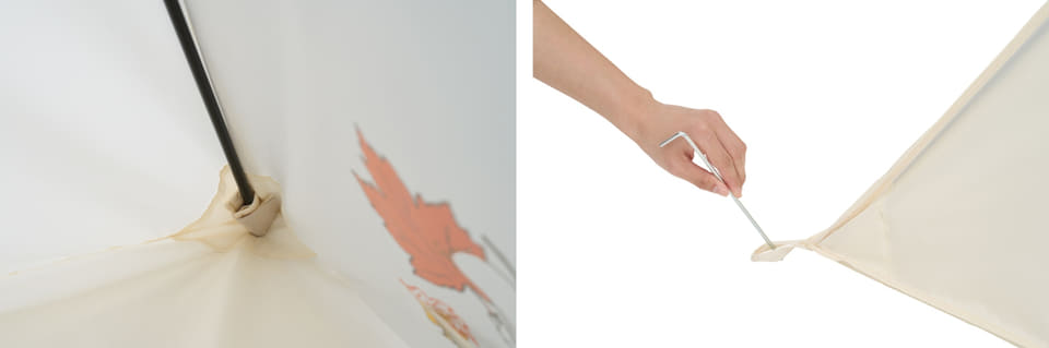 フルクローズタイプなので、公園やビーチ、ピクニックなどで手軽にプライベートスペースを確保でき、フレーム差し込み用ポケットがあるため室内でも床を傷つけずに使用できるという。持ち運びや保管に便利な収納バッグも付属する。