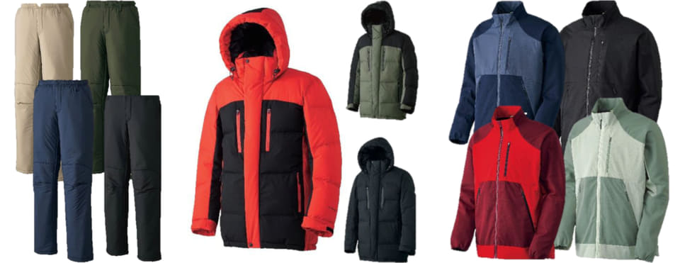 透湿性と軽さに優れた昨年版の素材“XShelter断熱α”と、-10~25℃の寒暖差に対応し、軽量設計はそのままに断熱性と伸縮性が進化した今シーズンの“XShelter断熱β”があり、アイテムにより最大S~4Lの幅広いサイズとユニセックスで着られるカラーバリエーションを展開する。