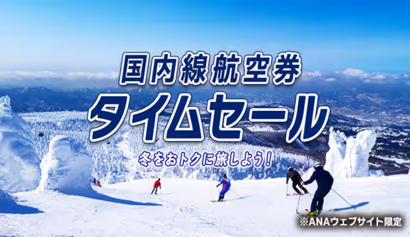 ANAは、国内線航空券タイムセールを10月3日0時~9日23時59分に実施する。対象搭乗期間は12月1日~2026年3月12日(12月26日~2026年1月4日を除く)。