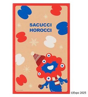 関西エリアを中心に展開する「冬のミャクミャク サクッチホロッチ 8個入」(972円)は、あったかマフラーと帽子を身にまとったミャクミャクがサクッチ・ホロッチを手に持った、この冬ならではのデザイン。三角形の個包装フィルムには、ミャクミャクのかわいらしい後ろ姿をあしらっている。