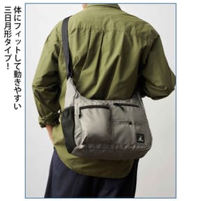 特別付録は、アウトドアブランド「キャプテンスタッグ」のショルダーバッグ。身体にフィットして動きやすい三日月型デザインで、サイズは約33×8.5×22.5cm(幅×奥行き×高さ)。
