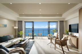 沖縄本島北部の本部町に位置し、沖縄自動車道経由で那覇空港からクルマで約99分。伊江島・水納島・瀬底島を望む「モトブブルー」の海に囲まれた総室数230室のコンドミニアム型オーシャンリゾートホテルで、運営は同社が担う。