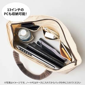 茶色をアクセントにしたキャンバス調の落ち着いたデザインは、MonoMax11月号だけのオリジナル。休日のお出かけや買い出し、お仕事バッグにもお勧めという。