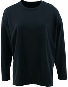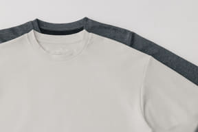 既存のユニセックスモデルから、肌触りやフィット感を改良。袖の縫い目を肩より低めにしたドロップショルダーを採用しており、動きやすさも向上しているという。腰回りのデザインとして、裾の長さが前後で異なる構造も取り入れた。