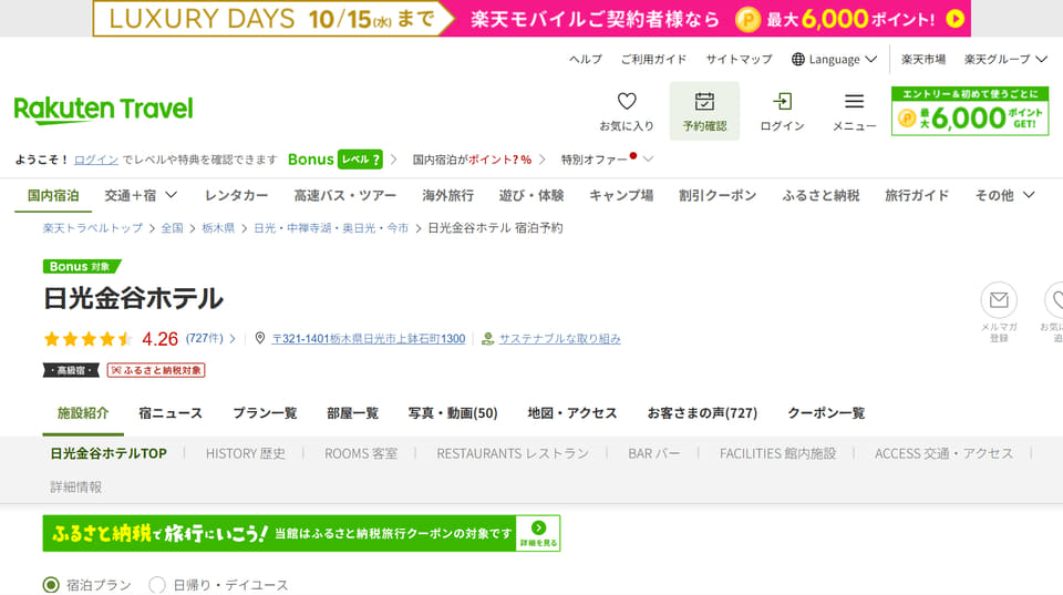 楽天トラベル 高級宿セール「LUXURY DAYS」