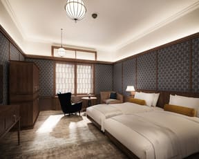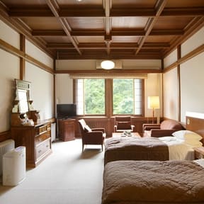 世界遺産・日光東照宮まで徒歩約15分。日本の建築美と西洋のインテリアが目を引く建物は、本館・新館・別館・第2新館と主に4つからなり、ホテルの代表的な「デラックスタイプ」をはじめ、客室もひとつ一つ異なる趣を持つ。