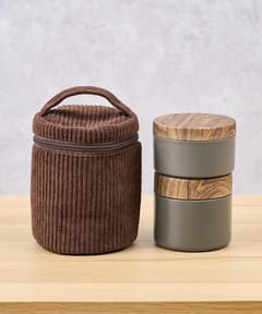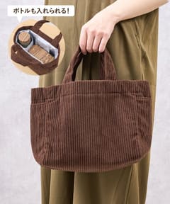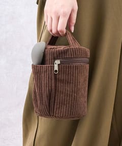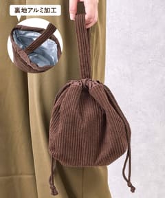 これら木目風アイテムと一緒に使いたいのが、同時発売のランチバッグ。ブラウンの“コーデュロイ”生地が特徴で、保冷剤が入るポケットとボトルホルダーの仕切りが付いたトートバッグ(660円)、巾着バッグ(330円)、スプーンの収納ポケットが付いた縦型ジャーケース(330円)の3種類がラインアップ。このうちトートと巾着は、内側に汚れなどを拭き取りやすいアルミ加工生地を使用している。