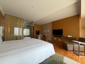 I stayed in a "1 King Premium" room, one of 272 rooms in total, located on the 23rd floor. The 50-square-meter (538 sq. ft.) room features one king bed, a separate bathroom, toilet, and wash area, as well as a walk-in closet and a dedicated desk space.