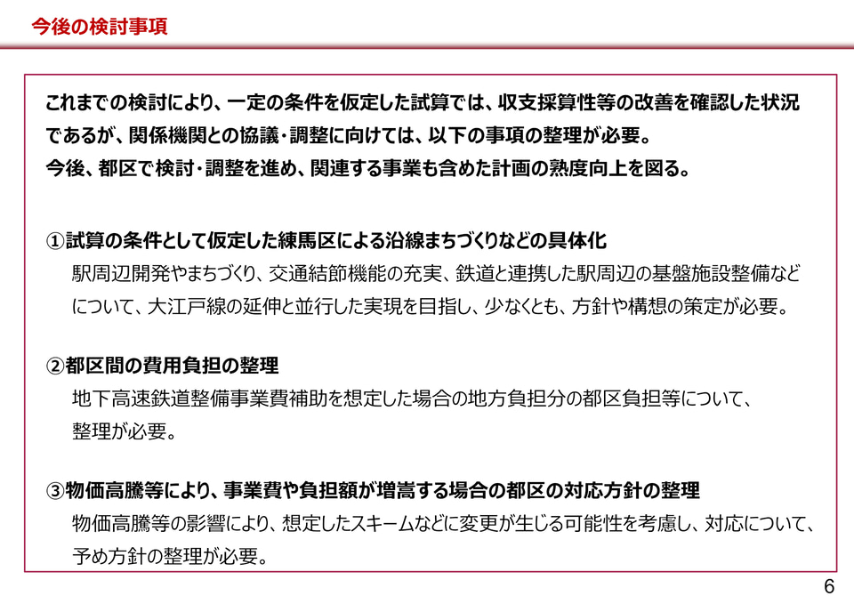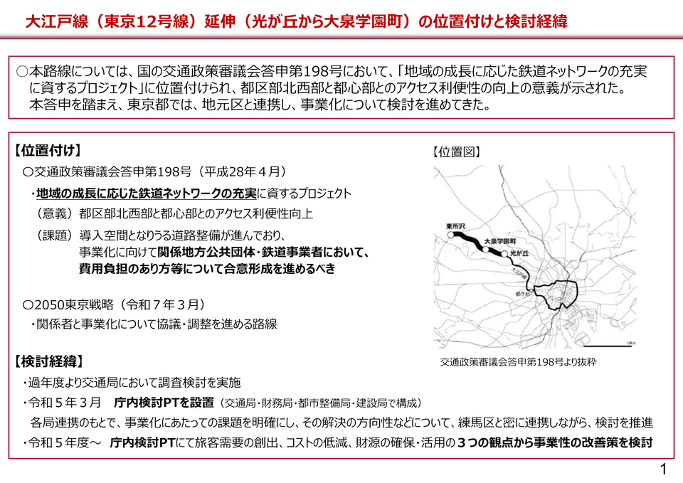 国の交通政策審議会による答申第198号(2016年4月)において「地域の成長に応じた鉄道ネットワークの充実に資するプロジェクト」の1つとして位置づけられたことを踏まえ、東京都が練馬区と連携し、事業化について検討を進めてきたもの。