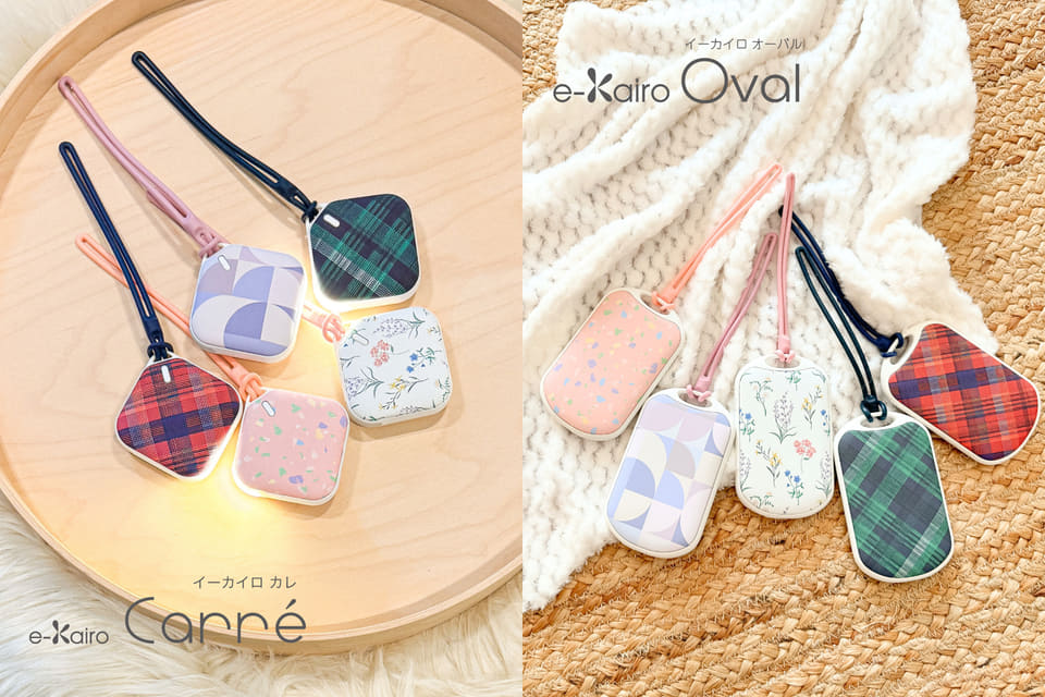 繰り返し使える充電式カイロ「e-Kairo」に新柄。LEDライト付きの“カレ”とスマホ充電もできる“オーバル”