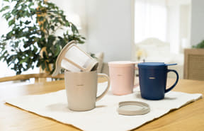 ストレーナーとフタがセットになった保温マグカップ。これまで人気のグレージュ1色のみ展開してきたが、「明るい色がほしい」「落ち着いた色も選びたい」といった要望を受けて新たに2色を追加。サクラピンクは春の桜のようにやさしく上品な色合い。ネイビーは夜空を思わせるシックで深みのある色合いが特徴。オフィスからアウトドア、ギフトまで、シーンに合わせて選べるようになった。