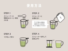 軽量約260g、サイズは120×93×107mm(幅×奥行き×高さ)。メッシュの目が細かく微粉が出にくいストレーナーを採用しているため、紅茶などの茶葉はもちろんコーヒーも本格抽出が可能という。