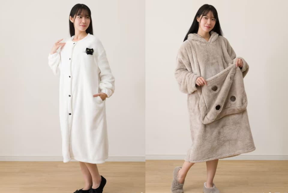 “ニャンポケ”を搭載した着る毛布は、ネコが入れる大きなポケットが付いたワンピース型ルームウェアで、昨年即完売したという人気商品。ポケットにはネコの手足を出せる穴が空いていて、爪切り時などにも活用できる。また、ポケット部分はチャックで取り外し可能なので洗濯もしやすい。