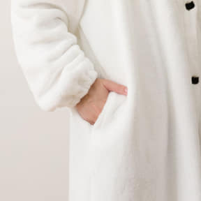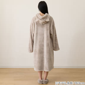 こちらもミドル丈のサイズ感で動きやすく、生地はネコと一緒にあたたかく過ごせるNウォーム素材を使用しており、さらにネコ耳がかわいいフード付き。抗菌防臭加工によって、いやなニオイの発生を軽減するのもポイント。