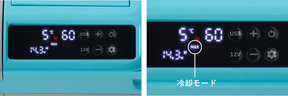 設定温度はシンプルな操作スイッチで調節できるほか、冷却モードはフルパワーで急速に冷却する「急速モード(MAX)」と、消費電力を抑えながらゆっくり冷却する「節電モード(ECO)」の2種類から選択可能。