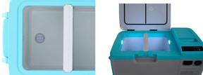 電気の力でキャンプをさらに快適にする「エレキャンシリーズ」から新登場した、ホイール付きのポータブル保冷保温庫。-20℃から60℃までの温度設定に対応しており、仕切りで2室に分けることで個別に温度を調整できる(左右の温度差は最大55℃まで)。例えば冷蔵(5℃)と冷蔵(-20℃)、保温(60℃)と冷蔵(5℃)を同時に行なうことも可能。