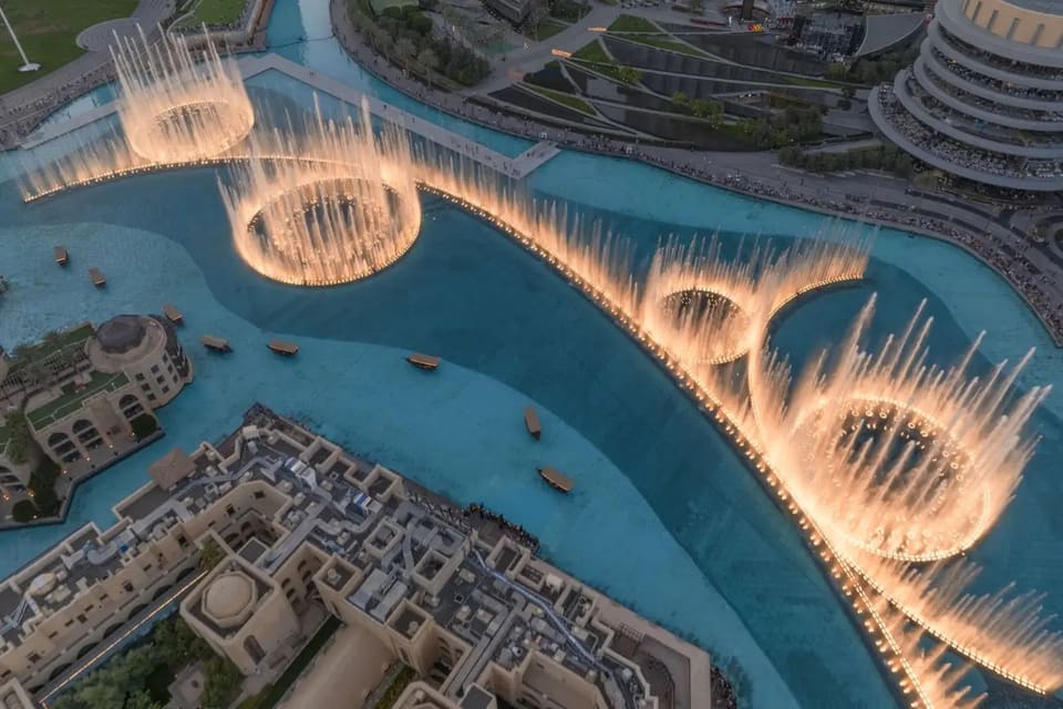 大規模噴水ショー「ドバイ・ファウンテン」は、リニューアルを経て10月1日に再開した。音と光を組み合わせた演出が人気で、有料席からの観覧プランもある。