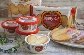 限定商品として、バターとくるみの味わいが楽しめる「源氏デニッシュ」を11月7日・8日・14日・15日に販売。餃子風味のフィリングが入った「浜松餃子パイ」や、ホワイトチョコ入りラングドシャの「クックダッセ」、「源氏パイ」がのった「源氏パイアイス」も取り扱う。