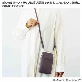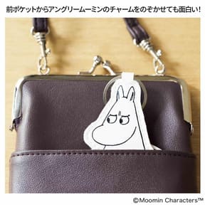セットのバッグチャームは、ムーミンの怒った表情がかわいいレザー調。スマホショルダーにぶら下げるのはもちろん、前ポケットからのぞかせてもキュート。