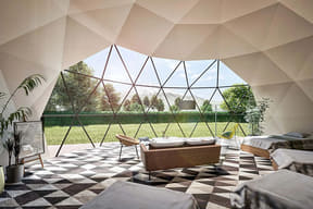 ドームテントは定員6人の「スタンダードテント」、定員8人の「デラックスドーム」、定員10人の「プレミアムドーム」の3タイプが基本。プライベートプール付きのタイプとして、定員6人の「ラグジュアリードーム」や定員20人の「ツインドーム」も用意した。