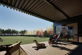 ドッグキャビンは、ペットの同伴が可能な定員5人の客室。プライベートドッグランを併設しており、ドッグランの大きさ別に「スタンダード」「グランデ」の2タイプを設定している。