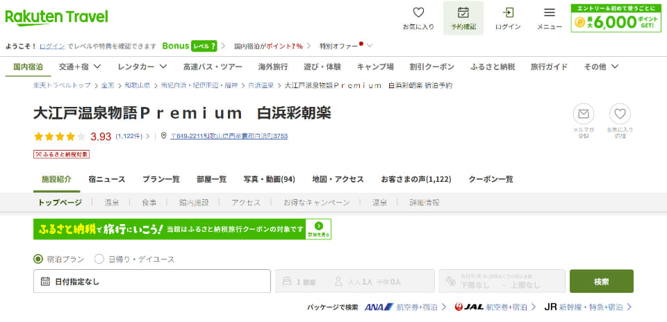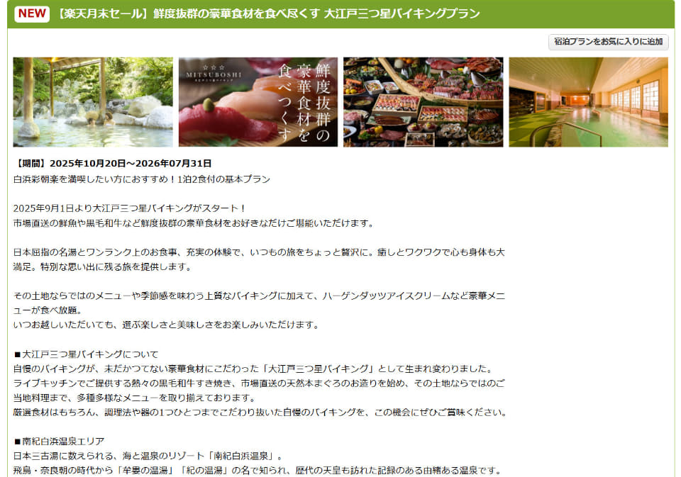 大江戸温泉物語Premium 白浜彩朝楽、三つ星バイキングプランが最大15%オフ。畳風呂や露天風呂で名湯満喫