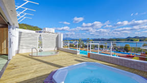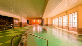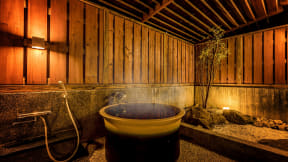 お風呂は、広々とした大浴場畳風呂や水着で入るオーシャンビューの露天風呂、家族やカップルにうれしい貸切露天風呂など多彩なお風呂を備えており、館内湯めぐりが楽しめる。