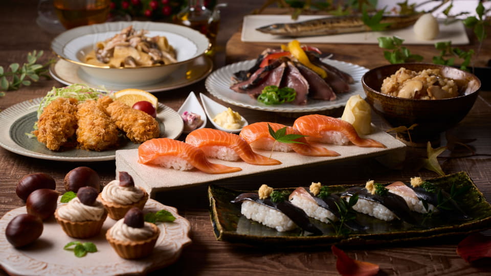 食事は全国4か所の宿だけで提供している「大江戸三つ星バイキング」。黒毛和牛すき焼きや市場直送の天然本まぐろ、紅ズワイガニなどの豪華食材を味わえる。ドリンク飲み放題で、秋はサンマや松茸ごはん、和栗モンブランといったメニューも登場。