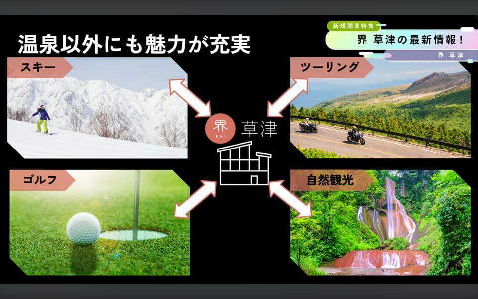 星野リゾートは、温泉旅館ブランド「界 草津」(群馬県吾妻郡草津町大字草津字白根464番地690)を2026年6月7日に開業すると発表した。予約受付は明日10月23日に開始する。