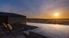 施設は歴史ある山代温泉に建っており、最上階の露天風呂「加賀天空の湯」は2024年にリニューアルしたばかり。インフィニティプールならぬ「インフィニティ温泉」として加賀の風景を一望できる。