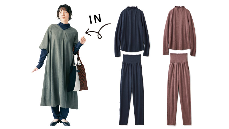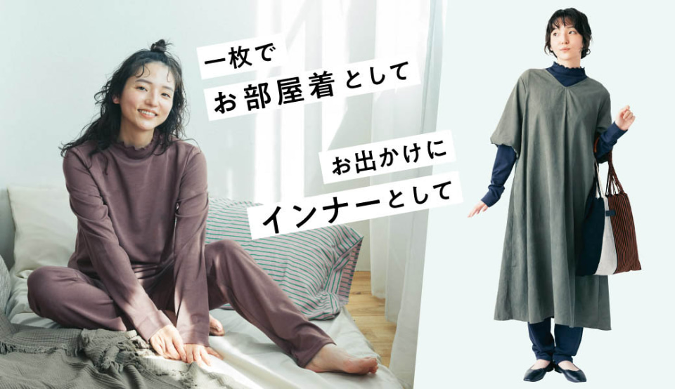 また、身体を覆う面積を可能な限り広げるため、手もとや足の甲まで隠れる丈感に仕上げたうえ、はら巻き仕様のウエストデザインで、おなかまわりもすっぽりカバー。自宅でのリラックスタイムはもちろん、お出かけ中、外気の冷たさが気になる秋冬に、おしゃれと両立しながらできる寒さ対策としてもお勧めとのこと。