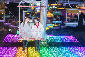 このほか、今年オープンした全長100mのスライダー「マジカルウェーブ」と標高370mの空中を自転車で漕ぎ進む「青空ペダル」などのナイトアトラクションを楽しめる。