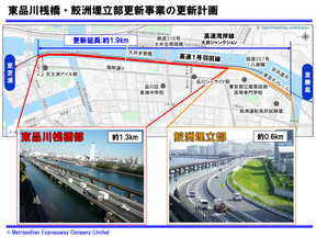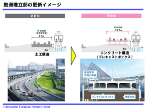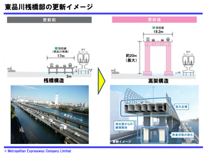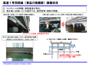 同区間は1963年の開通以来、東京と神奈川の臨海部を結ぶ動脈として利用されてきたが、1日約7万台もの交通量に加え、海水面に近いことから構造物が腐食しやすいなど過酷な環境にあり、近年では重大な損傷が多数発生していたという。