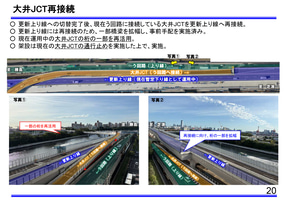 なお現在、仮設う回路を利用している上り線の切り替えは2026年以降を予定しており、それに伴う工事の一環として2026年春ごろの週末2日間を利用して下り線の通行止めを行なう予定。加えて、時期は明言していないものの上り線の切り替え時には大井JCT(湾岸線からの流入路)が長期間通行止めになることもあわせて予告されている。