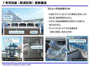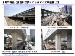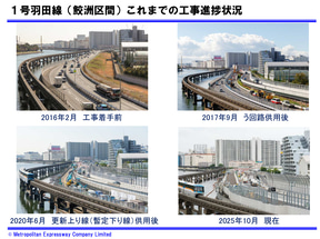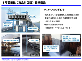 首都高速道路は10月22日、1号羽田線「東品川桟橋・鮫洲埋立部」のリニューアル工事現場を報道陣向けに公開した。